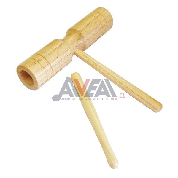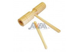 Toc-toc de madera. Mide 17 cm x 15 cm. Instrumento de pequeña percusión tradicional.